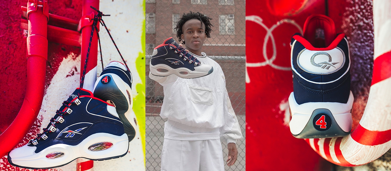The Reebok Question Mid ‘USA #4’ pays tribute to Allen Iverson’s efforts at the 2004 Olympic Games in Athens, Greece.